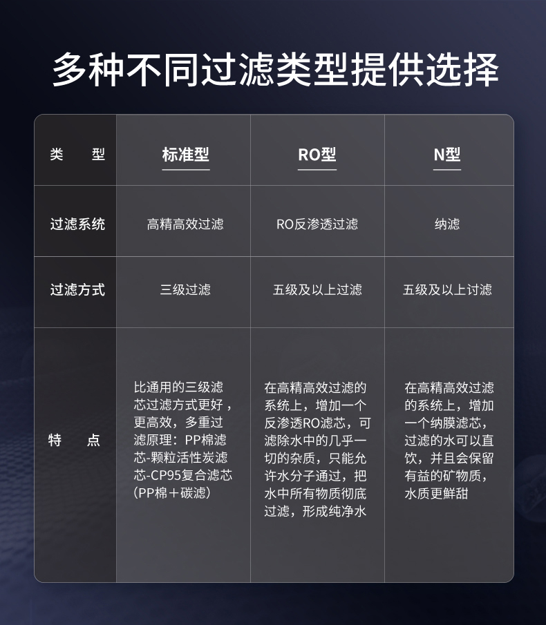 此款外觀三種不同過濾配置對應型號:
